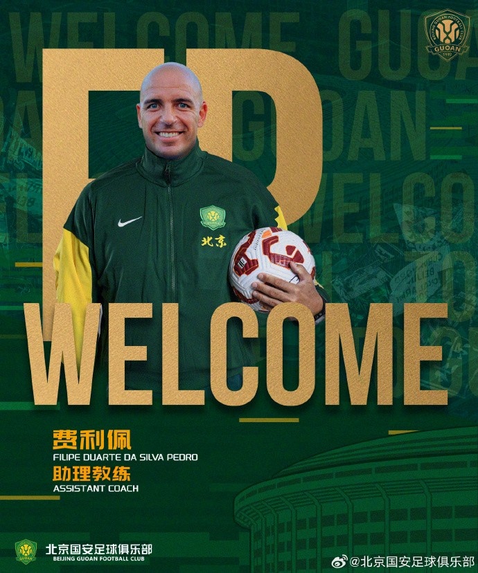 费利佩(Filipe Duarte Da Silva Pedro)加入一线队教练团队,担任助理教练。